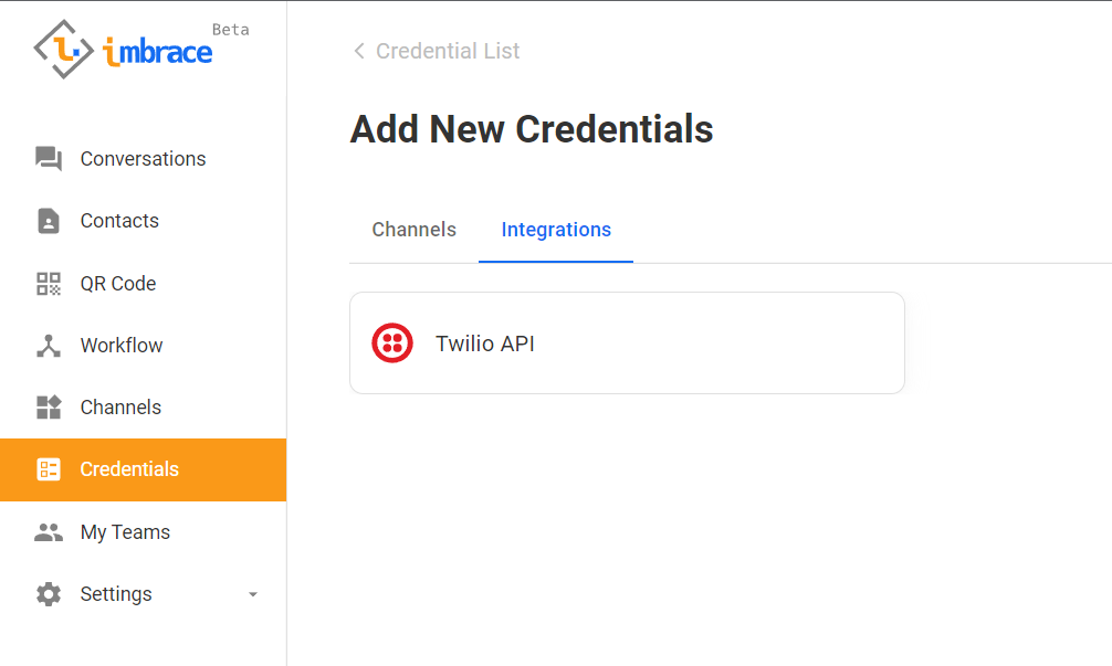 **STEP 4:** Select **Twilio API** in the **Integrations** section.
